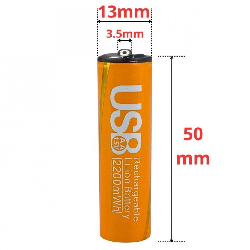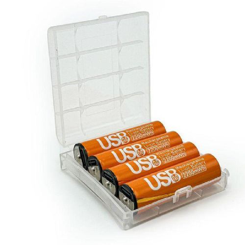4 piles rechargeables USB Type-C de 1,5 V et 2200 mWh, compatibles avec tous les appareils utilisant des piles AA. Faciles à recharger via USB Type-C, économiques, durables et respectueuses de l’environnement.