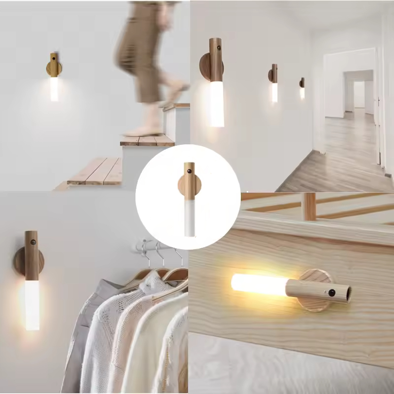 Applique murale rechargeable avec détecteur de mouvement – Éclairage intelligent et design en bois