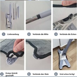 Son manche réglable permet d’adapter la hauteur à tous les utilisateurs, assurant un confort optimal et réduisant la fatigue pendant le nettoyage. La tête de balai en microfibre hautement absorbante capture efficacement la poussière, la saleté et les taches, laissant les sols propres et bien entretenus.