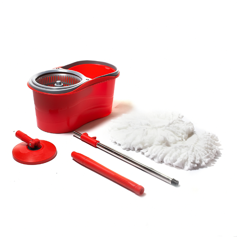 • Fonctionnalités : Rotation à 360°, système d’essorage avec panier en plastique, serpillière à double entraînement