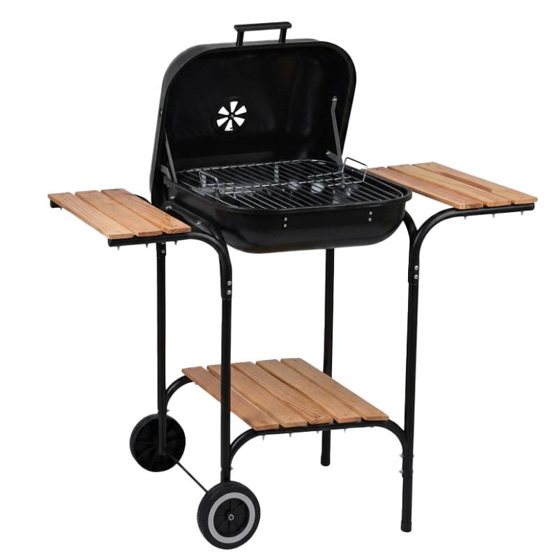 Barbecue Grillade Mobile avec 2 Tables en Bois COUPOLE