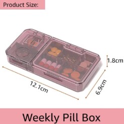 La boîte à médicaments mini mauve est un accessoire compact, pratique et sécurisé, idéal pour le quotidien comme pour les déplacements. Avec ses dimensions 12 × 7 × 2 cm, elle se glisse facilement dans un sac, une poche ou une trousse de voyage.