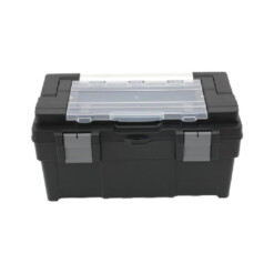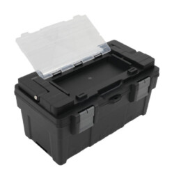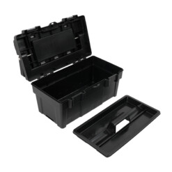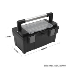 Découvrez cette caisse à outils robuste et pratique, conçue pour transporter et organiser facilement vos outils. Avec ses dimensions de 445 x 255 x 225 mm, elle offre un espace de rangement spacieux et sécurisé pour tous vos accessoires et instruments.