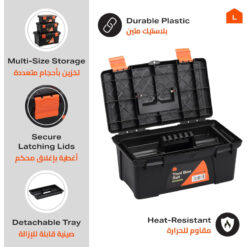 Organisez et rangez vos outils à main et accessoires avec la boîte à outils , un indispensable pour tout bricoleur ! Grâce à son plateau amovible, cette boîte facilite le rangement et l’accès à vos petits objets essentiels. Sa conception robuste, fabriquée en plastique durable, protège vos outils des conditions de travail exigeantes et des dommages lors de vos déplacements d’un site à l’autre. Avec ses deux fermetures à verrou, soyez assuré que vos outils resteront en sécurité.