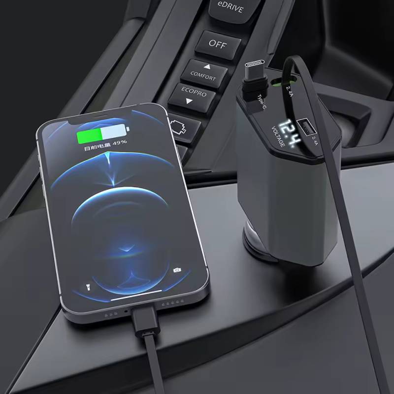 Chargeur de voiture rétractable 4 en 1 charge rapide 120W