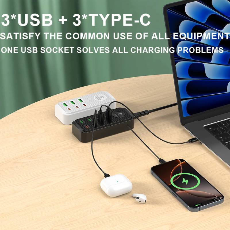 🔗 3 ports USB-A + 3 ports Type-C