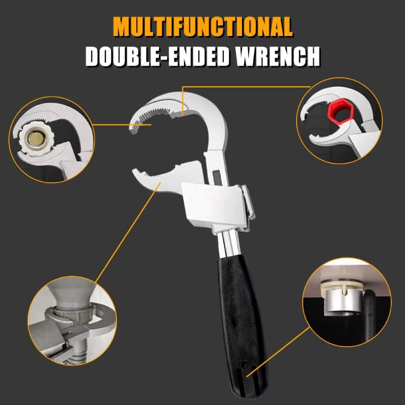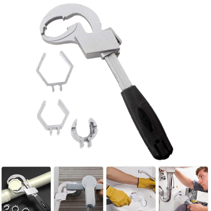 Simplifiez vos travaux de plomberie avec notre clé magique réglable à double extrémité, conçue pour une compatibilité universelle et une utilisation efficace. Avec ses trois adaptateurs interchangeables, cette clé multifonctionnelle s’adapte à la majorité des écrous de robinet et autres fixations, ce qui en fait un outil indispensable pour le démontage, l’assemblage et la réparation de vos équipements sanitaires.