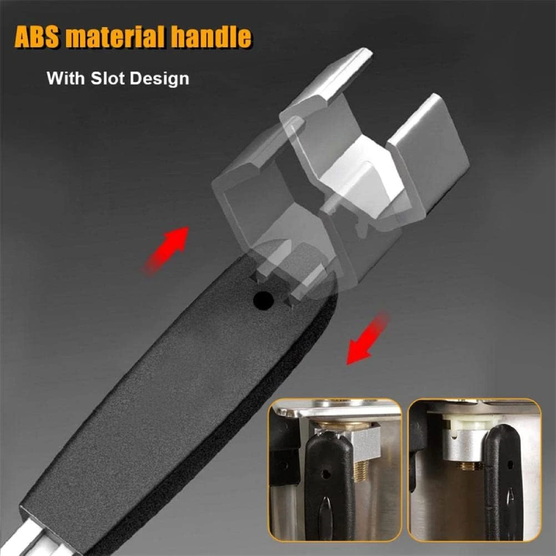 Fabriquée en alliage d’aluminium de haute qualité, cette clé est résistante aux chocs, durable et légère, vous permettant de travailler en toute confiance même dans les espaces restreints. Son design antidérapant avec des dents canines assure une prise ferme sur les écrous, évitant tout glissement lors de l’ouverture ou du serrage.