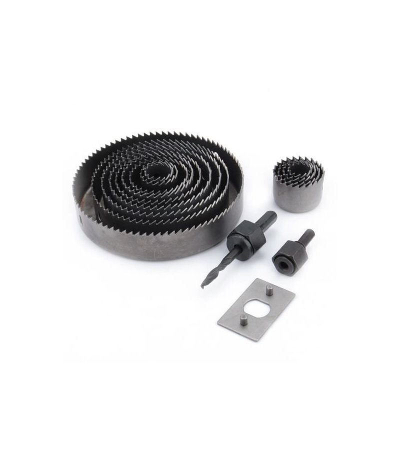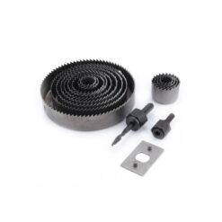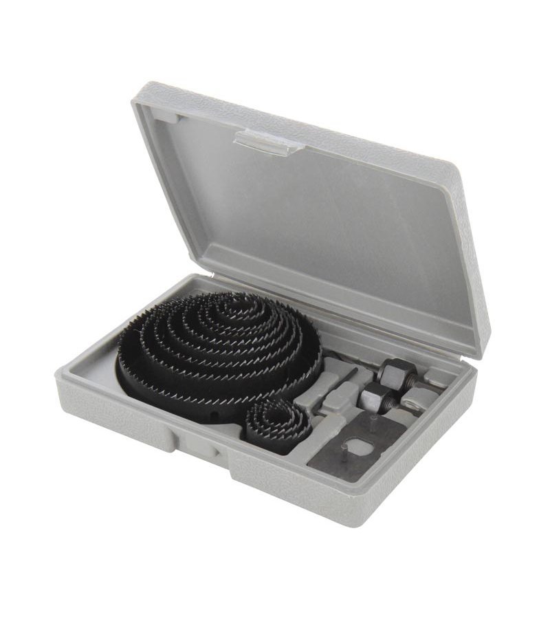 Dents thermotraitées. Pour le bois dur et tendre, le plastique, le plâtre et les métaux non ferreux. Contient 12 scies-cloches : 19, 22, 25, 32, 38, 44, 51, 64, 76, 89, 102 et 127 mm ; arbre de 6 mm et 10 mm, 1 plaque de renfort et 1 clé 6 pans. Mallette robuste.