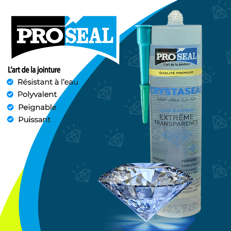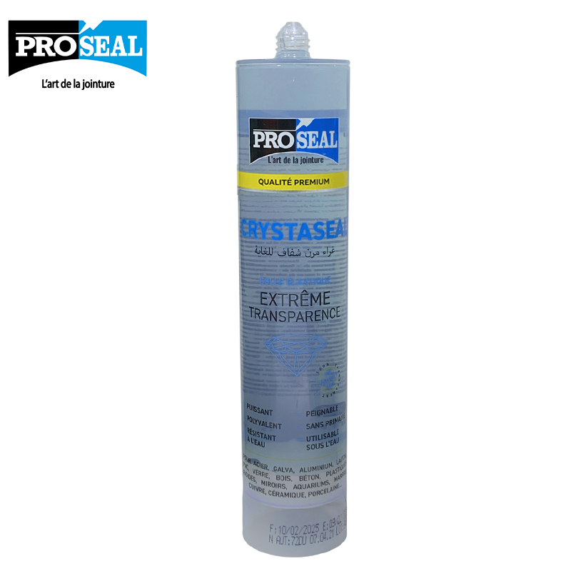Découvrez CRYSTASEAL, la colle élastique de haute performance proposée par Proseal. Conçu pour offrir une transparence extrême, ce mastic mono-composant à base de polymère MS est puissant, polyvalent et respectueux de l’environnement. Il est idéal pour tous vos travaux d’étanchéité et de collage, et s’adapte parfaitement à une large variété de matériaux.