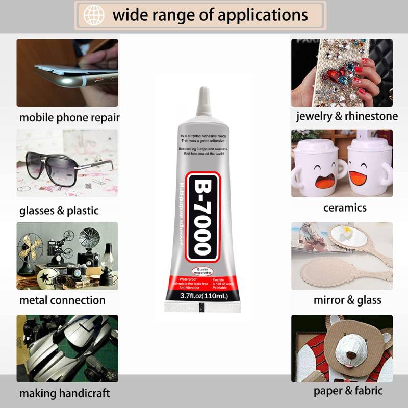 - Cette colle a un adhésif puissant, idéal pour coller des finitions en bois, réparer des articles fissurés, coller des décorations murales de smartphone, des bijoux, des composants électroniques, des jouets, du métal, du verre, du caoutchouc, de la fibre, du papier, de la céramique, du bois, du cuir et d’autres matériaux.