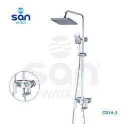 - Douchette 3 fonctions (La pomme de douche à effet pluie, une pomme de douche à main et la robinetterie rotative, qui peuvent être facilement sélectionnés au moyen d’un bouton.