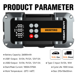 Découvrez le compresseur portable BEETRO, un appareil multifonctionnel doté d’une capacité exceptionnelle de 26000mAh (96.2Wh) et d’un courant de démarrage impressionnant de 3750A. Conçu pour répondre à tous vos besoins en situation d’urgence ou pour la charge de vos appareils, cet appareil est idéal pour les automobilistes, aventuriers et professionnels.