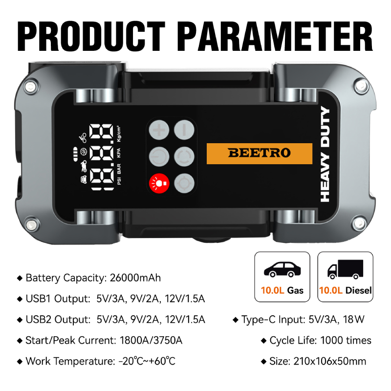Compresseur De Voiture Avec Booster Batterie 26000Mah BEETRO