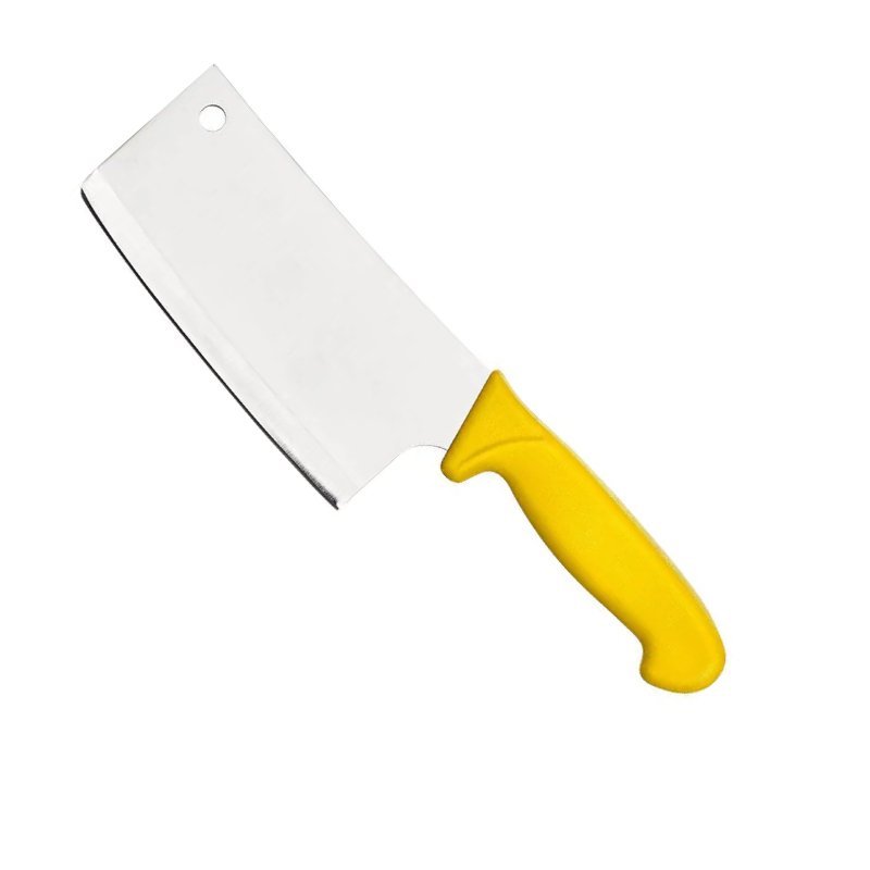 Ce couteau couperet nommé aussi « feuille de boucher » est appelé ainsi car il ressemble tout simplement à une feuille. C’est un couteau de découpe également utilisé par les bouchers. La lame de ce couperet est particulièrement haute et arrondie, elle est fabriquée en acier inoxydable et a le dos du tranchant relevé et pointu à son extrémité pour un travail de précision. Ses proportions et son poids sont tels que, alliées à la puissance du bras, il vous procurera une grande force de coupe.