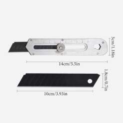 Un outil robuste et durable : Fabriqué en acier inoxydable, ce cutter résiste à la rouille, à l’eau et aux chocs. Les lames SK4 remplaçables garantissent une coupe nette et précise sur le long terme. Son corps en acier solide, équipé d’un bouton de verrouillage, assure une prise en main confortable et sécurisée.
