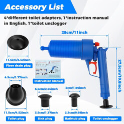 - Facile à utiliser : Les chevilles de toilette se fixent simplement dans le trou, permettant de comprimer l’air et d’actionner la gâchette pour générer une forte pression. En quelques secondes, le sabot est soufflé, dégageant efficacement le bouchon.