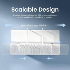 Sa longueur extensible de 55 à 95 cm le rend compatible avec la majorité des climatiseurs du marché. Il permet de rediriger l’air froid ou chaud, évitant ainsi qu’il souffle directement sur les personnes, ce qui est idéal pour protéger les enfants, les personnes âgées ou toute personne sensible.
