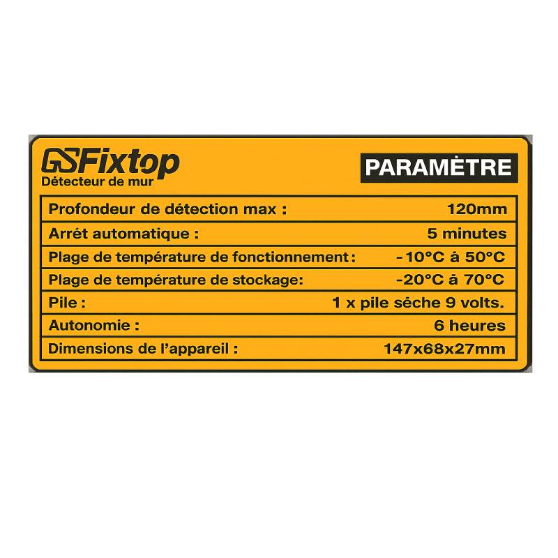 Le détecteur mural FIXTOP est un outil indispensable pour réaliser des travaux en toute sécurité et précision. Il permet de localiser rapidement les métaux, câbles électriques sous tension et structures en bois dissimulés dans les murs, plafonds ou cloisons, évitant ainsi les erreurs coûteuses lors du perçage ou de la découpe.