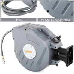 - Usage : Parfait pour l’utilisation d’air comprimé dans les ateliers, garages, chantiers et pour toutes applications nécessitant un déploiement contrôlé du tuyau.