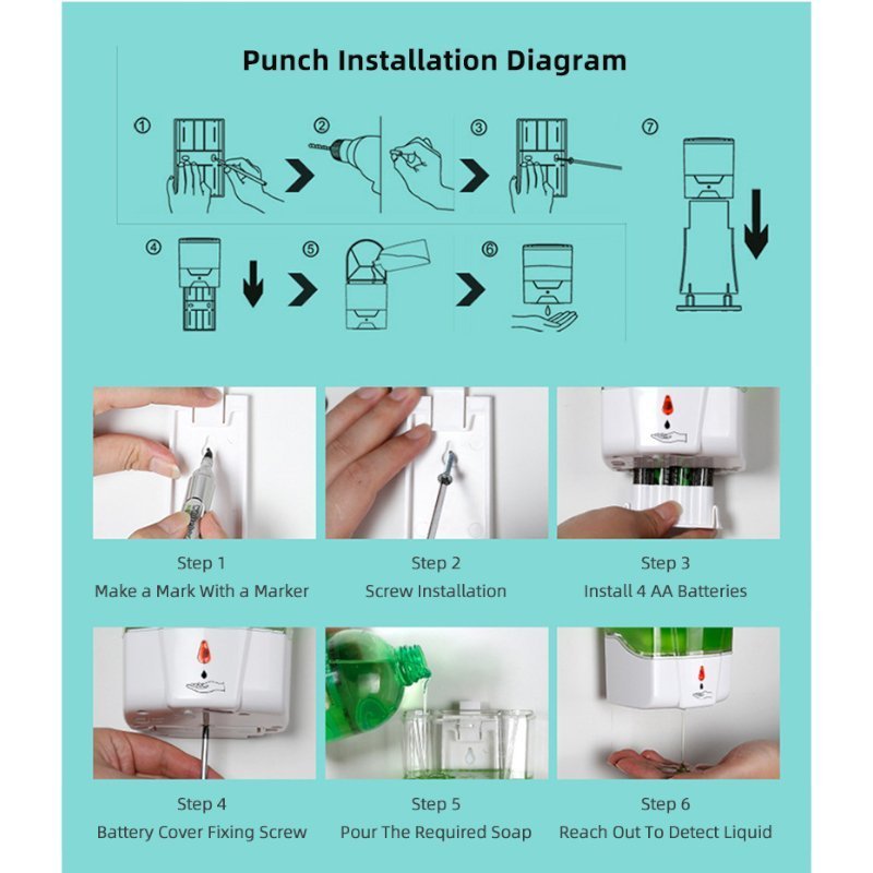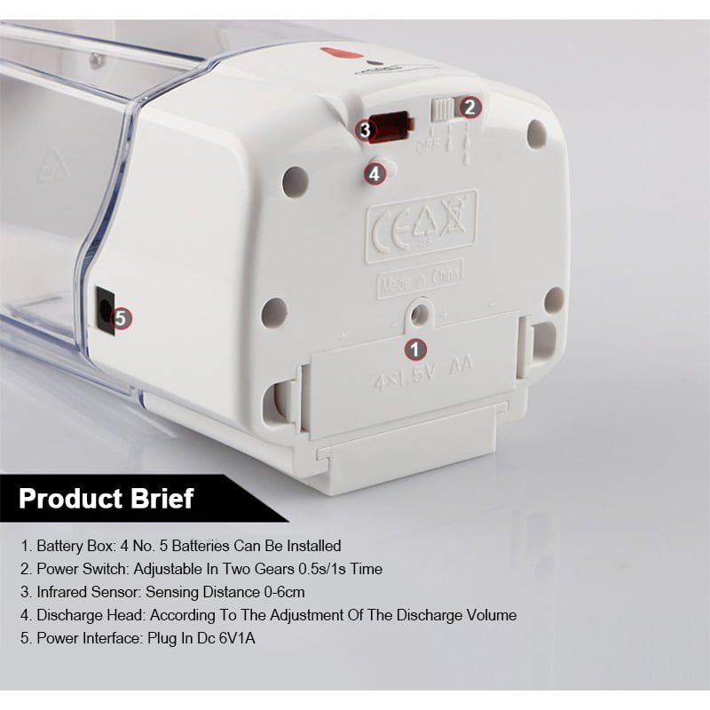 Le distributeur de savon magique a l’avantage d’une conception mains libres, c’est-à-dire que, sans le toucher, l’outil distribuera du savon lorsque votre main s’étendra sous la tête du distributeur. Le capteur infrarouge détectera votre main et distribuera automatiquement le savon dont vous avez besoin en quelques secondes. Ensuite, l’outil s’éteindra sans que vous le touchiez.