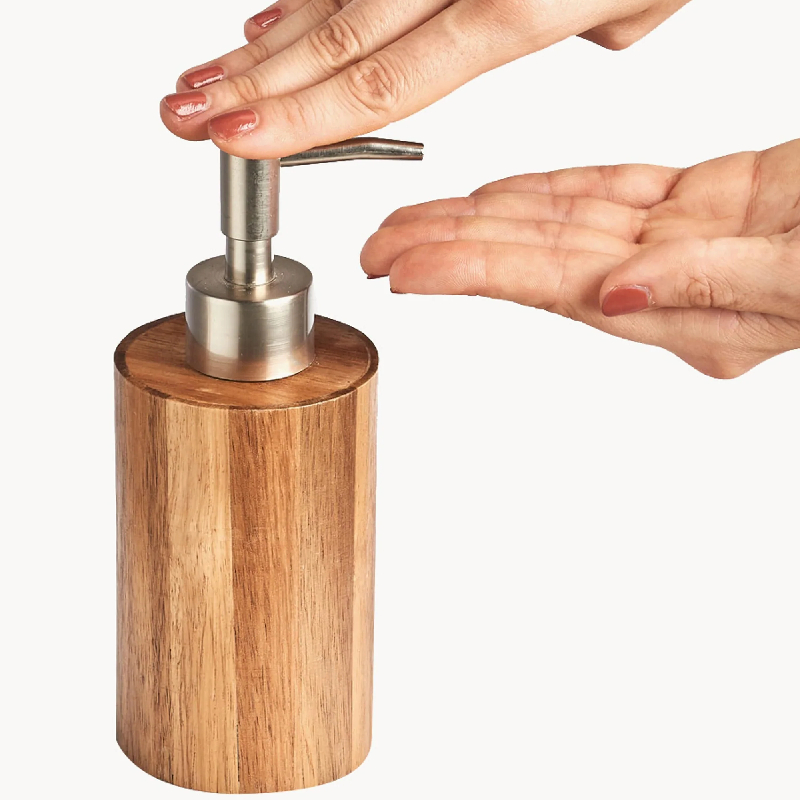Transformez votre routine de soins avec ce distributeur en bambou, pratique, écologique et élégant