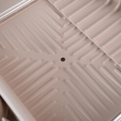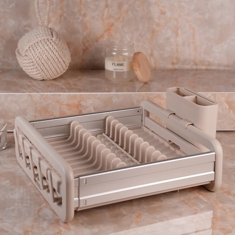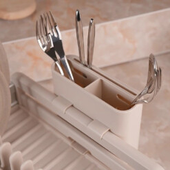 - Fonctionnalités intelligentes : Équipé d’un bac d’égouttement, d’un porte-ustensiles amovible pour un rangement pratique, cet égouttoir vous permet de sécher votre vaisselle rapidement tout en maintenant votre plan de travail propre et organisé.