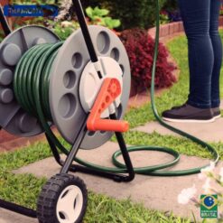 – Capacité de stockage jusqu’à 55 mètres de tuyau 1/2″. Ceci n’est qu’une valeur de référence, en considérant un tuyau 1/2″. La valeur peut varier plus ou moins selon le modèle et le diamètre du tuyau.