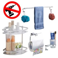 Ensemble Accessoires salle de bain Anti perçage en Aluminium