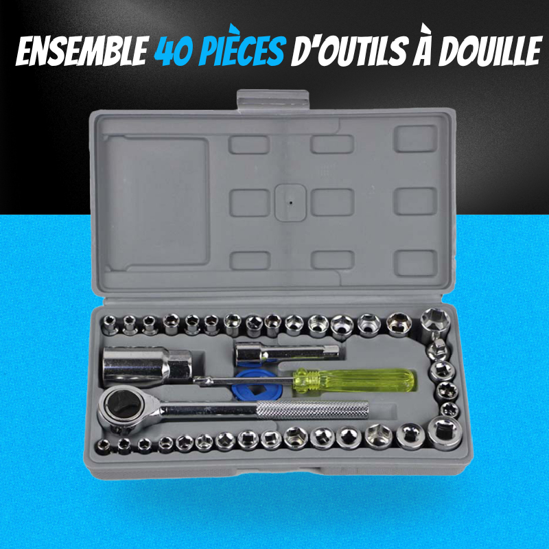 - 40 pièces d’outils à douille dans une boîte colorée pratique.