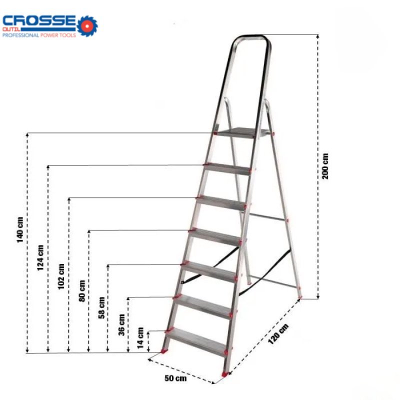 escabeau 07 marches crosse : portable, maniable, et pliable pour un gain de place en rangement