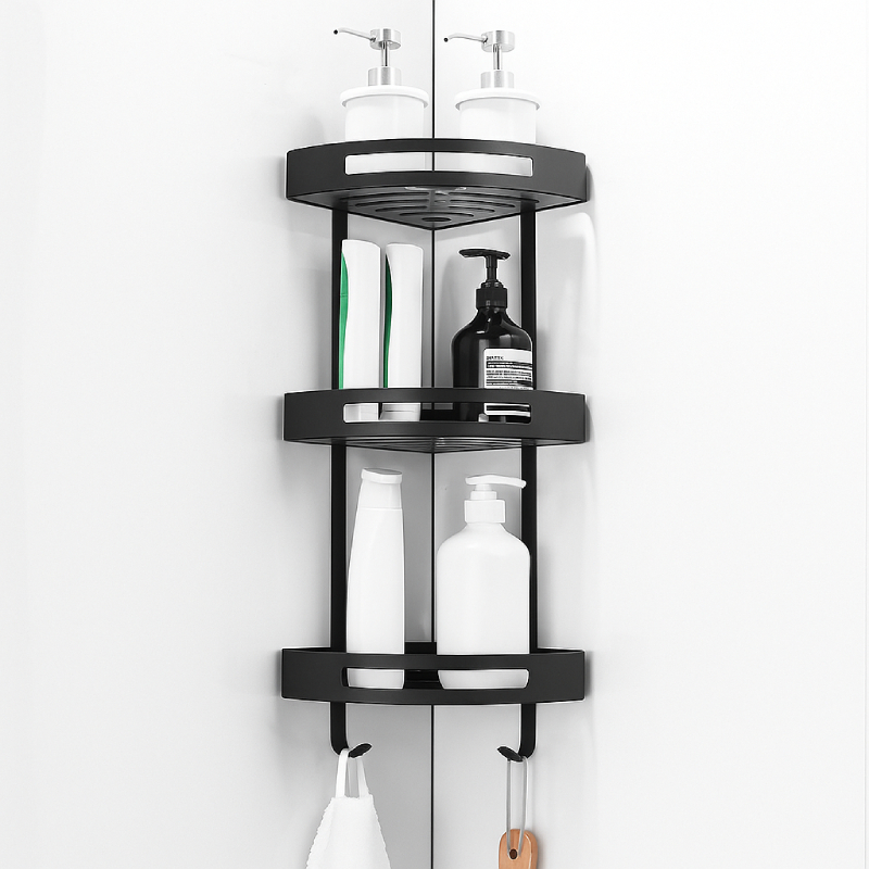 Découvrez l’Etagère Coins Double et triple en Aluminium noir, un accessoire de salle de bain pratique et élégant. Conçue pour s’adapter parfaitement aux coins de votre douche ou de votre baignoire, elle offre un espace de rangement supplémentaire pour vos produits de toilette, tels que vos savons, shampoings et revitalisants. Les tablettes triangulaires améliorent l’esthétique de votre salle de bain et offrent une surface de rangement optimale. Les trous sur la plaque permettent aux résidus d’eau de sécher rapidement et complètement. Fabriqué en aluminium de qualité, il est robuste, durable et léger, pour une utilisation longue et confidente. Un design moderne et élégant qui complète n’importe quelle décoration !