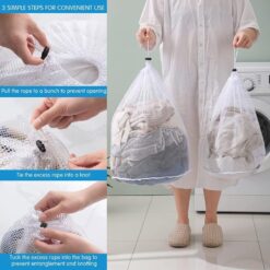 - Conception Parfaite : Filet linge est recouvert de mailles, ce qui peut protéger vos vêtements et les empêcher de se nouer, de se déformer et de s’emmêler lors du lavage en machine. Après avoir mis les vêtements dans le sac à linge, tirez sur le cordon de serrage et appuyez sur la boucle pour fermer fermement l’ouverture (La boucle à ressort en plastique est légère et lisse et ne blesse pas vos vêtements).