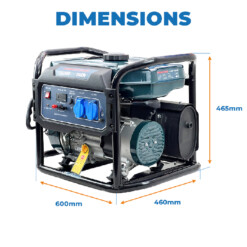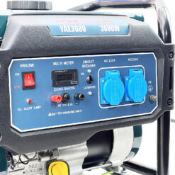 Fonctionnant à l’essence, il est équipé d’un réservoir de 15 litres et d’un système de démarrage manuel (recoil). Ce modèle est conçu avec un panneau de commande intuitif comprenant un voltmètre numérique (Multi Metre), deux prises 230V, une sortie DC 12V 8.3A pour charge batterie, une protection par disjoncteur, ainsi qu’un témoin d’huile.