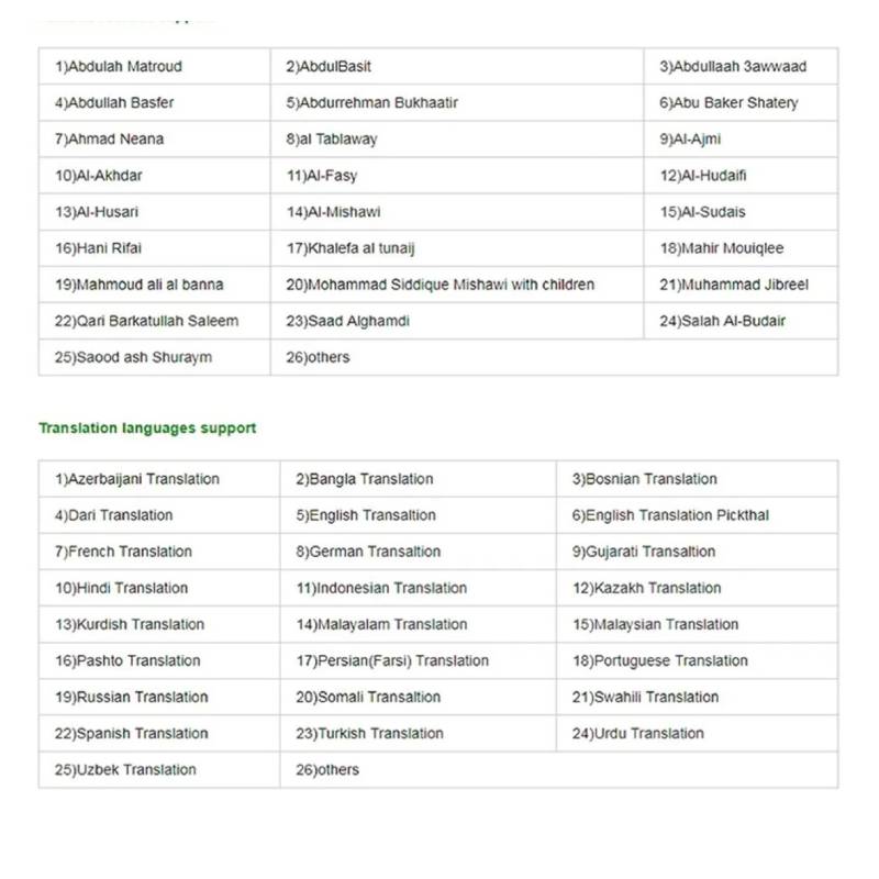 Haut-parleur Quran 16 récitations et 16 traductions linguistiques Hadees Tafseer Duaas