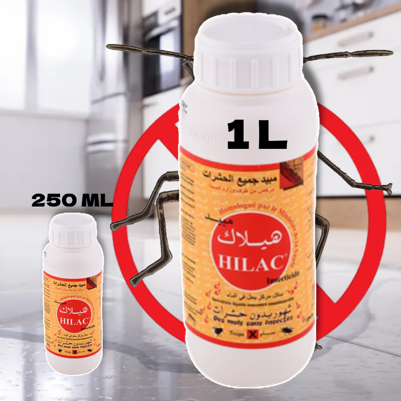HILAC Anti-insectes est un insecticide liquide concentré émulsionnable, homologué par le ministère de la santé, conçu pour lutter efficacement contre une large gamme d’insectes volants et rampants. Avec sa formule concentrée, il doit être dilué pour une utilisation sécurisée, permettant de traiter efficacement les surfaces et les zones infestées. Le grand format de 1 litre offre une longue durée d’utilisation, idéal pour les professionnels ou pour une utilisation régulière à domicile. Facile à préparer, il garantit une émulsion stable et une efficacité optimale pour la désinsectisation.