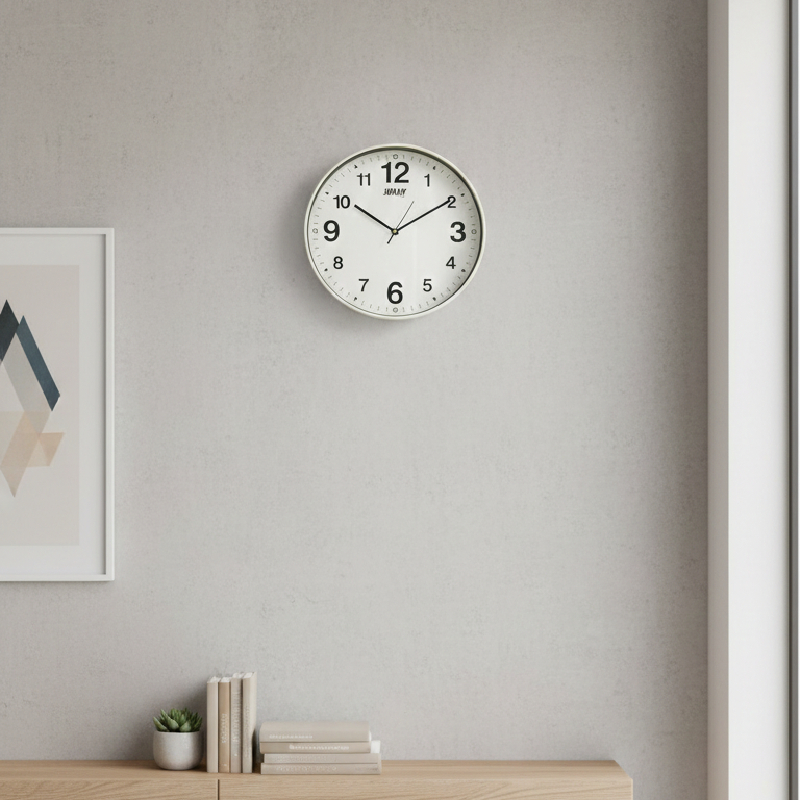 Fonctionnant à pile, cette horloge est facile à installer et ne nécessite aucun branchement électrique. Son diamètre de 31,5 cm offre une excellente visibilité de l’heure, même à distance, tout en restant discrète et harmonieuse sur le mur.