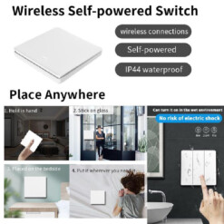 Côté sécurité, cet interrupteur est conçu pour durer. Le bouton cinétique est étanche IP44, garantissant une protection optimale contre l’humidité et les éclaboussures. Il n’y a aucun risque de contact électrique, aucun système électromagnétique dangereux et aucune pile susceptible de rouiller ou de fuir, ce qui en fait un produit fiable et sécurisé pour toute la famille.