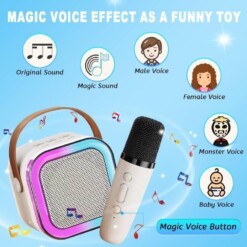 🌈 Les lumières RGB intégrées créent une atmosphère dynamique et colorée, parfaite pour les soirées, anniversaires et fêtes. Sa batterie de grande capacité assure une longue autonomie, vous permettant de profiter du karaoké pendant des heures sans interruption.