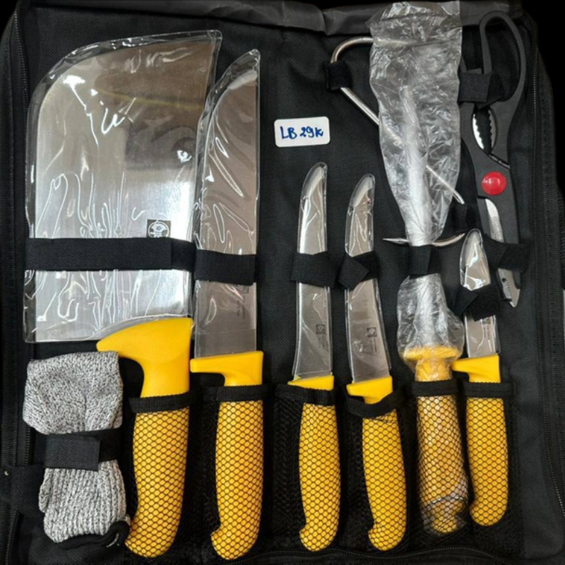 Passez au niveau professionnel avec le kit complet de 5 couteaux LB29K avec accessoires, conçu pour répondre à tous vos besoins en découpe de viande et cuisine.