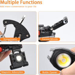Cette lampe de poche à porte-clés est idéale pour une variété de scénarios : camping, pêche, randonnée, déplacements nocturnes, inspections de voiture, réparations, patrouilles de nuit, auto-défense et éclairage d’urgence.