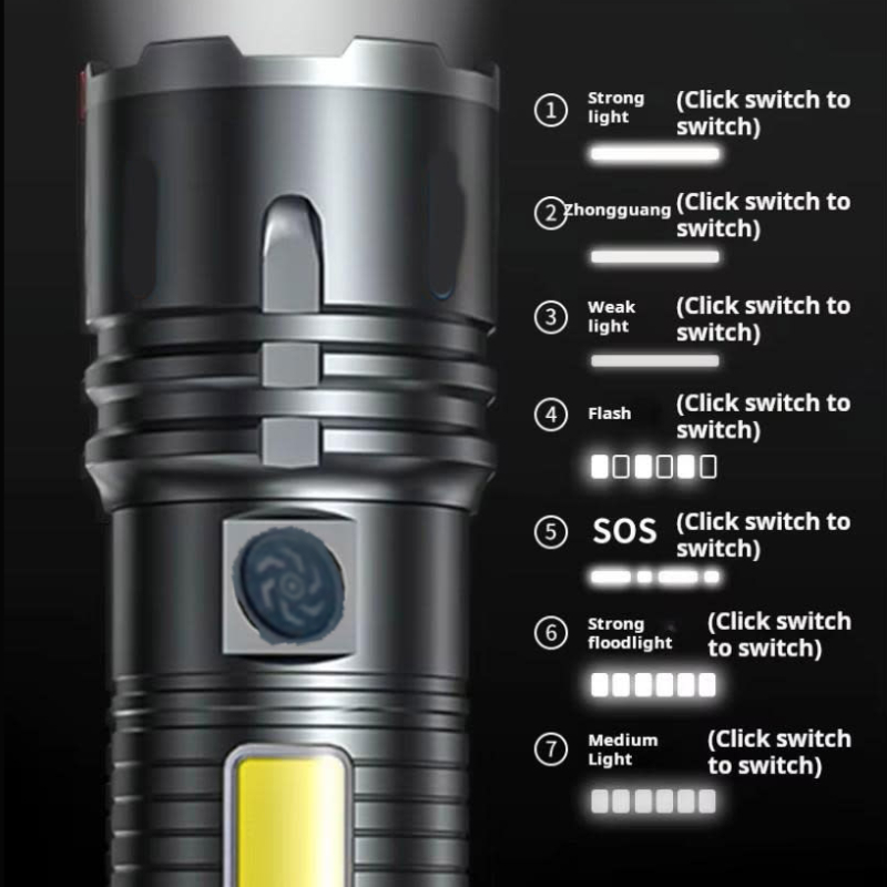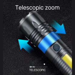 - Zoom télescopique réglable : Ajustez facilement le faisceau pour passer d’un éclairage large à un éclairage concentré, parfait pour voir à distance ou pour un usage précis.