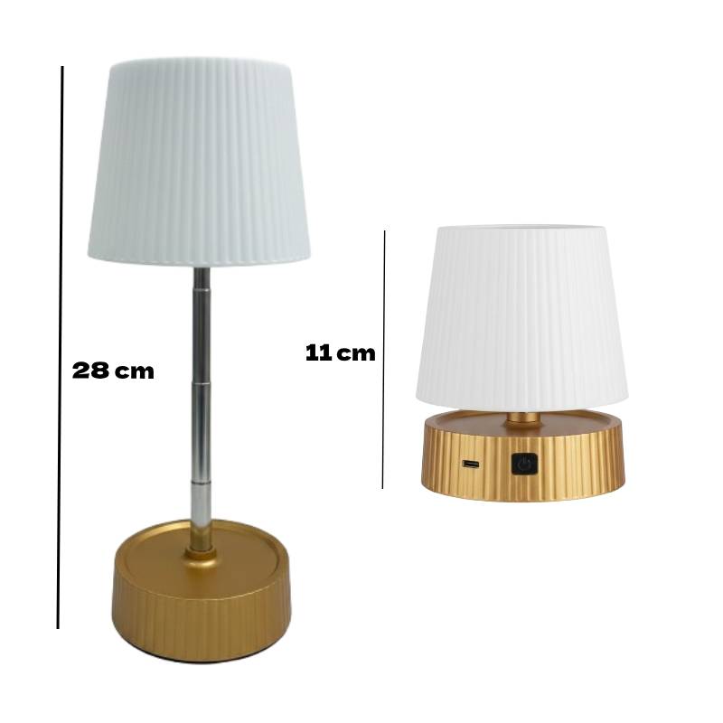 La lampe veilleuse rechargeable télescopique est une solution d’éclairage moderne, pratique et élégante, idéale pour la chambre, le salon, le bureau ou même en déplacement. Grâce à son design télescopique, elle peut s’étendre de 11 cm à 28 cm, ce qui permet d’ajuster facilement la hauteur et la diffusion de la lumière selon vos besoins.