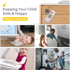 Grâce à son système de verrouillage intelligent à bouton coulissant, ce loquet permet aux parents d’ouvrir facilement les rangements tout en empêchant les petits curieux d’y accéder. Aucun outil n’est nécessaire : l’installation se fait en quelques secondes à l’aide d’un adhésif 3M puissant inclus.
