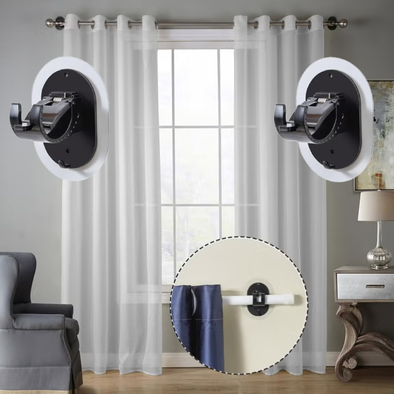 - 2 supports de tringle à rideaux sans perçage, en plastique ABS robuste.