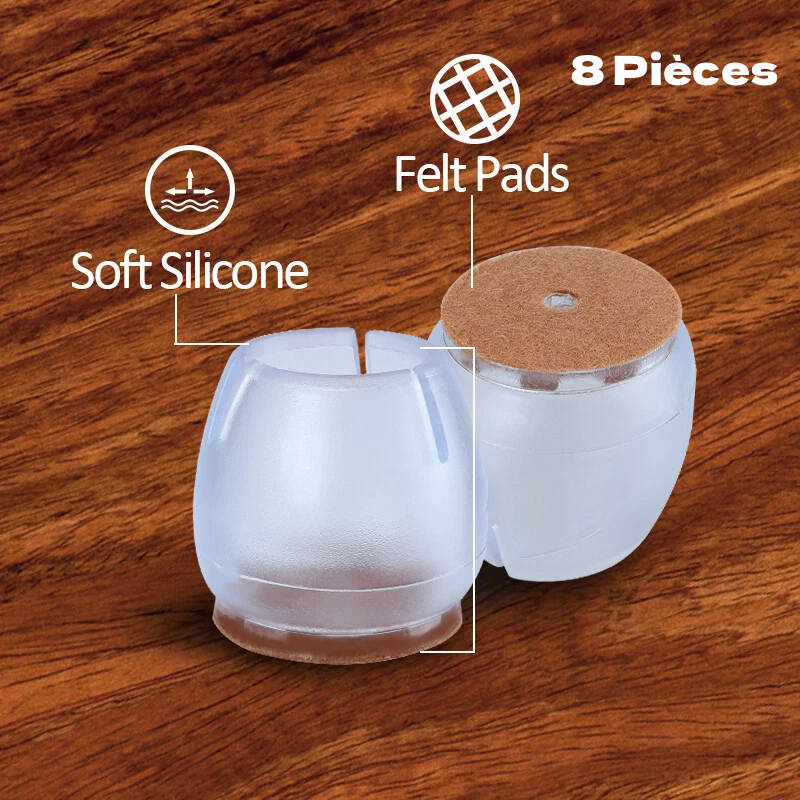 - Matériau de haute qualité : Fabriqués en silicone et en feutre, ces protections combinent résistance, douceur et flexibilité pour une utilisation longue durée. Le silicone assure la durabilité et la résistance à l’usure, tandis que le feutre protège efficacement tous types de sols.