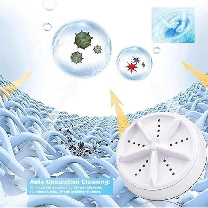 Machine à laver portable mini à turbine ultrasonique – Nettoyage efficace et pratique pour les voyages et les petites charges