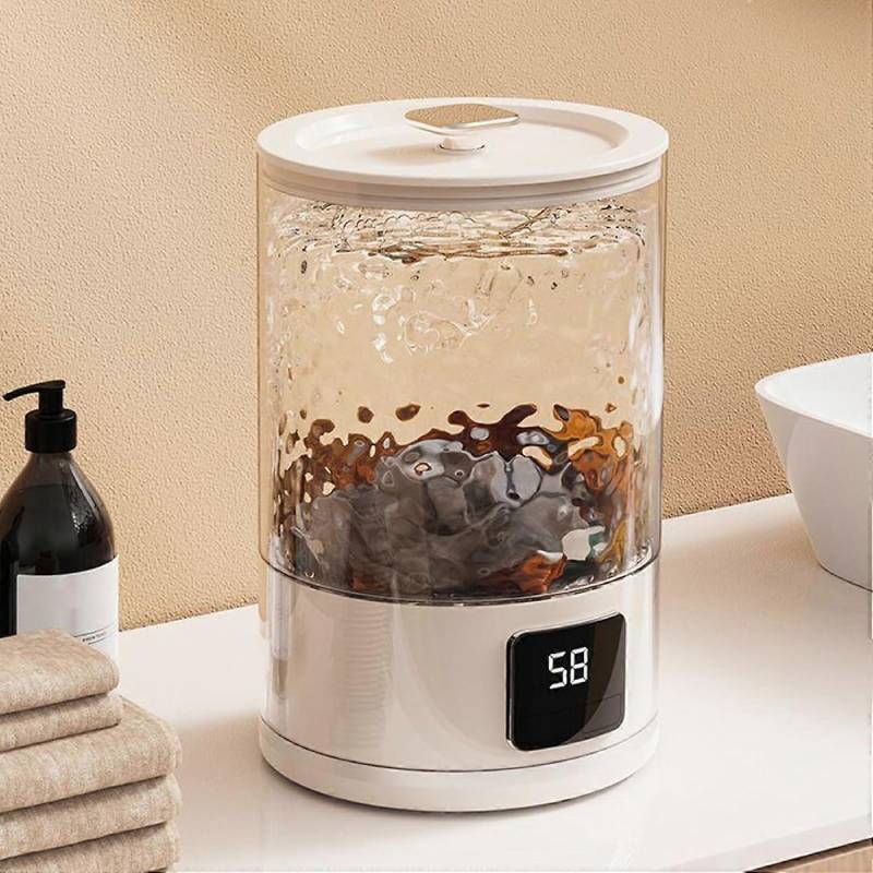 La mini machine à laver rechargeable compacte est la solution idéale pour garder vos sous-vêtements et chaussettes propres partout, même en déplacement. Grâce à son format portable et léger, elle se glisse facilement dans un sac à dos, une valise ou un sac de sport.