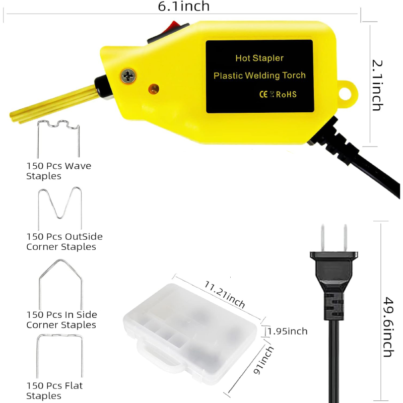- Inclus dans le pack, 200 agrafes supplémentaires (au total 400 agrafes) : 150 agrafes plates, 150 agrafes d’angle extérieures, 150 agrafes d’angle latérales, et 150 agrafes ondulées pour répondre à tous vos besoins de réparation.