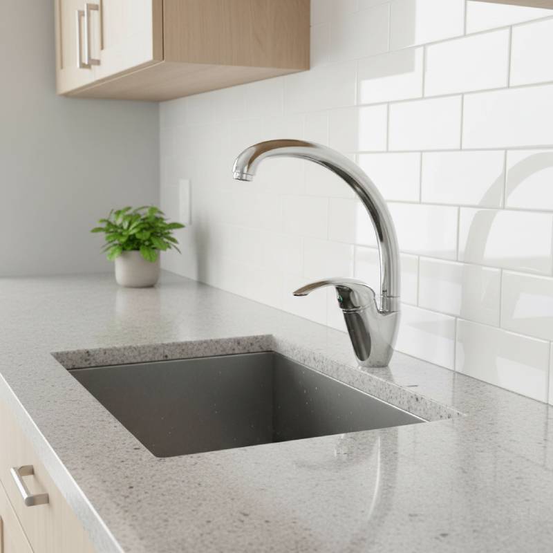Fabriqué avec un corps en métal robuste et une finition chromée brillante, ce mitigeur est résistant à la corrosion, à l’humidité et au calcaire. Son design élégant et minimaliste s’intègre parfaitement dans tous les styles de cuisines, qu’elles soient modernes ou classiques.